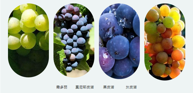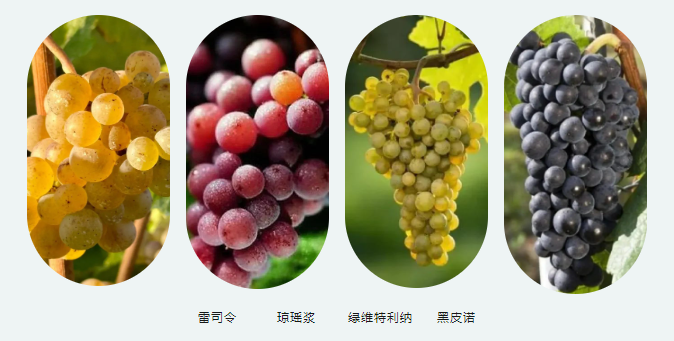 德国:雷司令、黑皮诺、灰皮诺、霞多丽、莫尼耶皮诺、琼瑶浆Gewurztraminer、西万尼Sylvaner等。